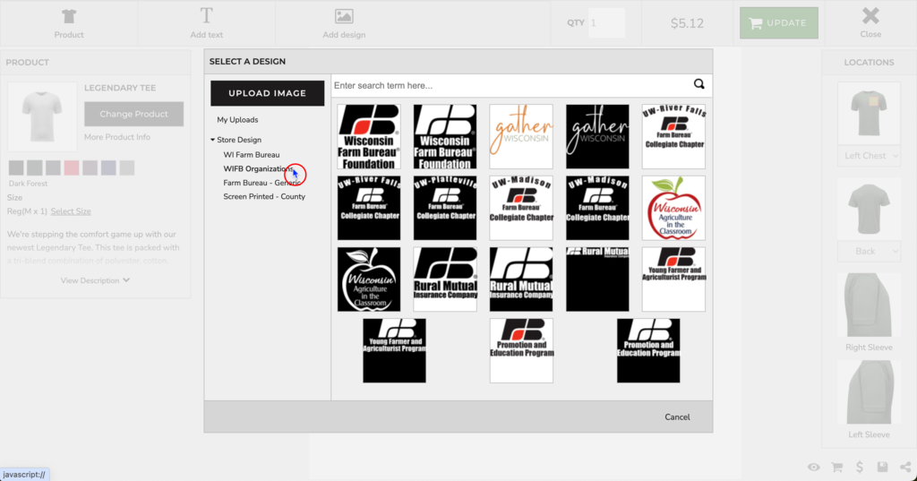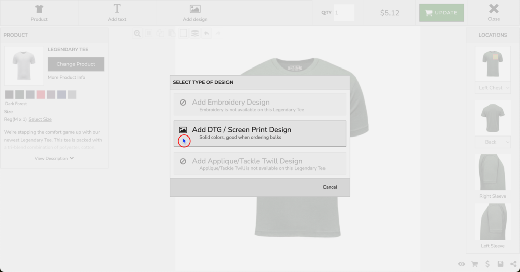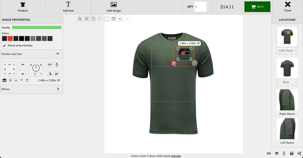 Note: In the left Image Properties panel, the Designer toggles allow you to adjust placement and size of the design.